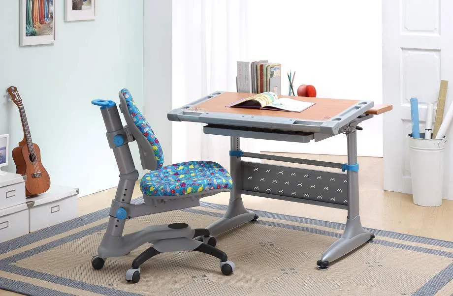 Стулья мы выбрали с регулируемой высотой. Ведь по правилам ступни каждого ребенка должны упираться в пол, когда дети сидят за столом. Стулья с регулируемой высотой идеально подходят в нашем случае, так как у отпрысков разный рост. Тем более он будет у них некоторое время еще увеличиваться. Мебельные предметы с регулируемой высотой позволяют в любой момент поднять сиденья над полом на необходимую высоту.