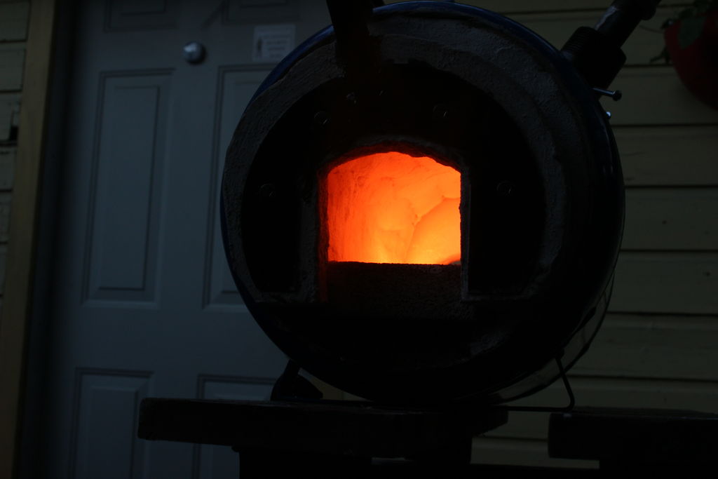 Тигель для плавление алюминия по обычаю делают из старого металлического огнетушителя, срезая у него верхнюю часть. тигель должен свободно входить в полость печи, притом незабываем о том что по краям должен размещаться уголь. Температура плавления алюминия составляет 660 с° расплавленный в печи металл заливается в заранее подготовленные металлические формы (УБЕДИТЕСЬ ЧТО ОНИ СУХИЕ!!!) если залить раскаленный метал в сырую форму, то последствия будут плачевными, потому как алюминий разлетится по сторонам! СОБЛЮДАЙТЕ ТЕХНИКУ БЕЗОПАСНОСТИ!