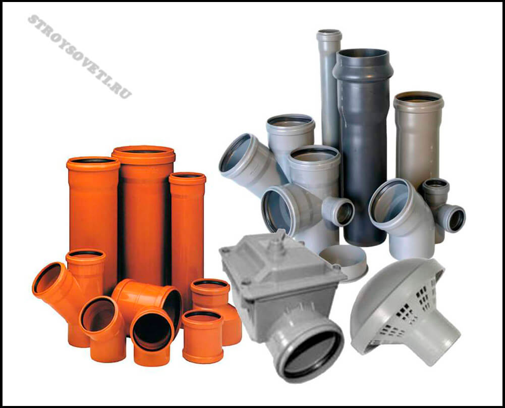 Для обустройства системы наружной канализации в основном применяют канализационную трубу оранжевого цвета. Они изготавливаются из полипропилена или же ПВХ. Для прокладки внутри дома используются серые.