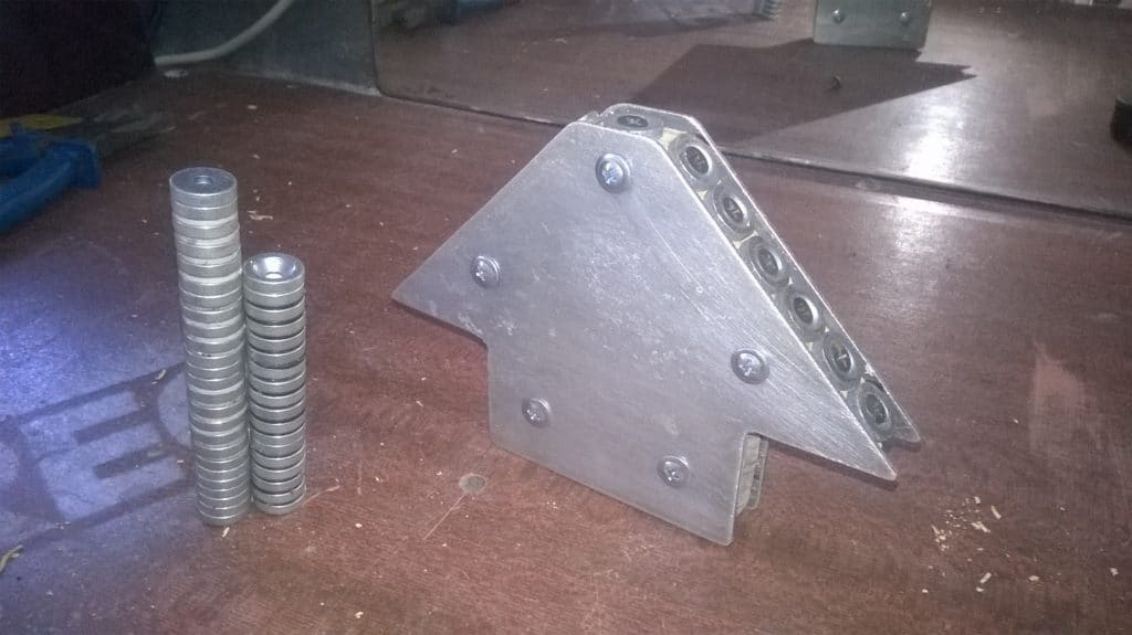 Шестнадцатиугольное основание можно сделать, используя лекала под углом 22,5-25 градусов: для этого просто прибивается две деревянные палки под необходимым углом. Затем труба вставляется в трубогибочный станок, и каждые 15 см вымеряются под углом в соответствии с деревянным лекалом. Тогда каждый угол будет ровным и одинаковым, а будущее основание устойчивым.