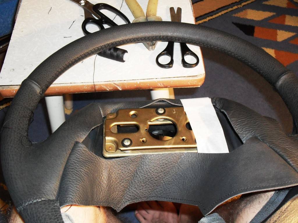 Данные манипуляции являются самыми сложными, т.к. обтяжка руля кожей своими руками не составит труда. Некоторые опытные мастера не снимают руль, и выполняют перетяжку «на месте». Это требует определенных навыков и умений. Новичкам так делать не рекомендуется.