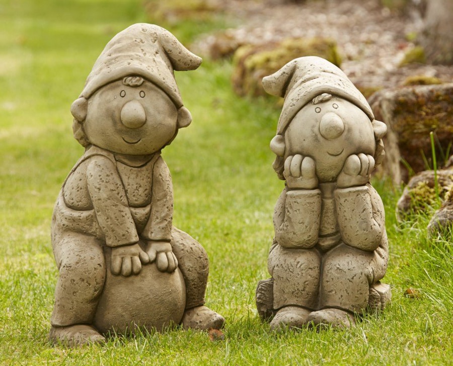 Гнома можно слепить своими руками из гипса, это удобный метод для тех, кто желает добиться большей реалистичности фигурки. Материал не подвержен влиянию холода, не боится долгого контакта с солнечными лучами, устойчив к атмосферным осадкам. Единственное, чего нужно опасаться, это механические воздействия, поэтому рекомендуется ставить скульптуру там, где она будет защищена от порывистого ветра.