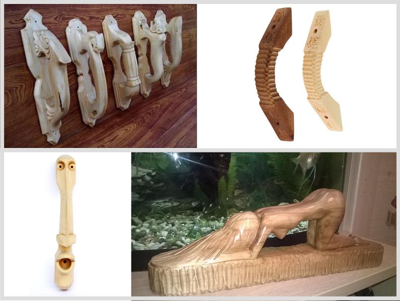 Резные ручки по-своему хороши. Вариантов таких изделий неописуемое множество. Чтобы изготовить нечто подобное, нужно иметь набор резцов и художественный вкус. При этом несложные ручки вполне реально обработать ножом.