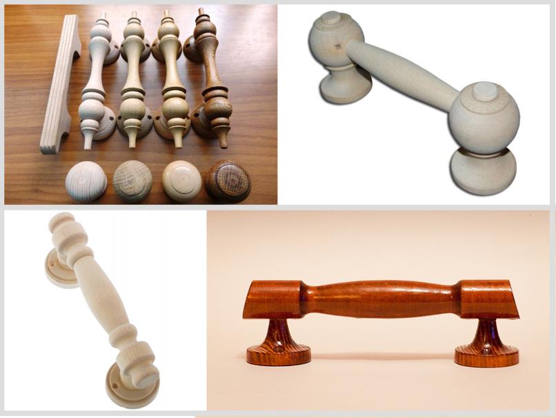 Представленные на фото изделия изготовлены на токарном станке. Небольшая ручка в виде кнопки состоит всего из одной детали и лучше подходит для мебели.