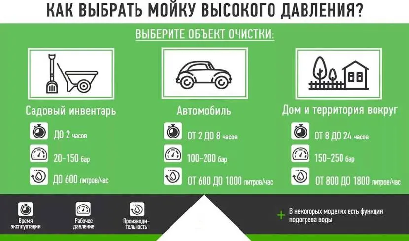Выбирая, какая мойка высокого давления лучше для мойки машины, отталкивайтесь от следующих характеристик: