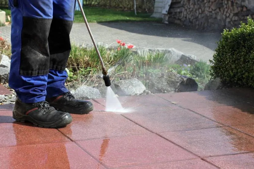 Чистка тротуарной плитки с помощью автомойкиИсточник ecobaltiavide.lv