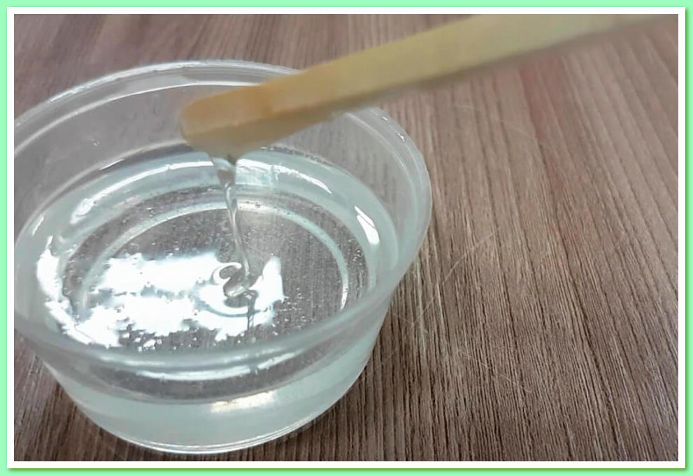 Аккуратно выливаем содержимое обоих шприцов в пластиковый стаканчик, после чего перемешиваем его. Субстанция поначалу должна выглядеть как сахарный сироп, а после перемешивания стать полностью прозрачной.