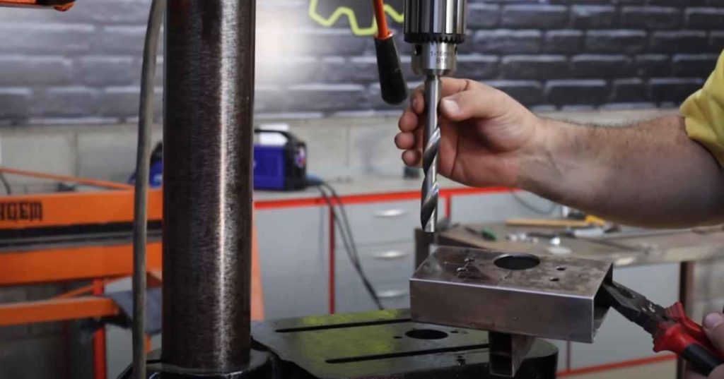 На следующем этапе рассверливаем все отверстия до требуемого диаметра — центральные отверстия мастер высверлил с помощью коронки по металлу.