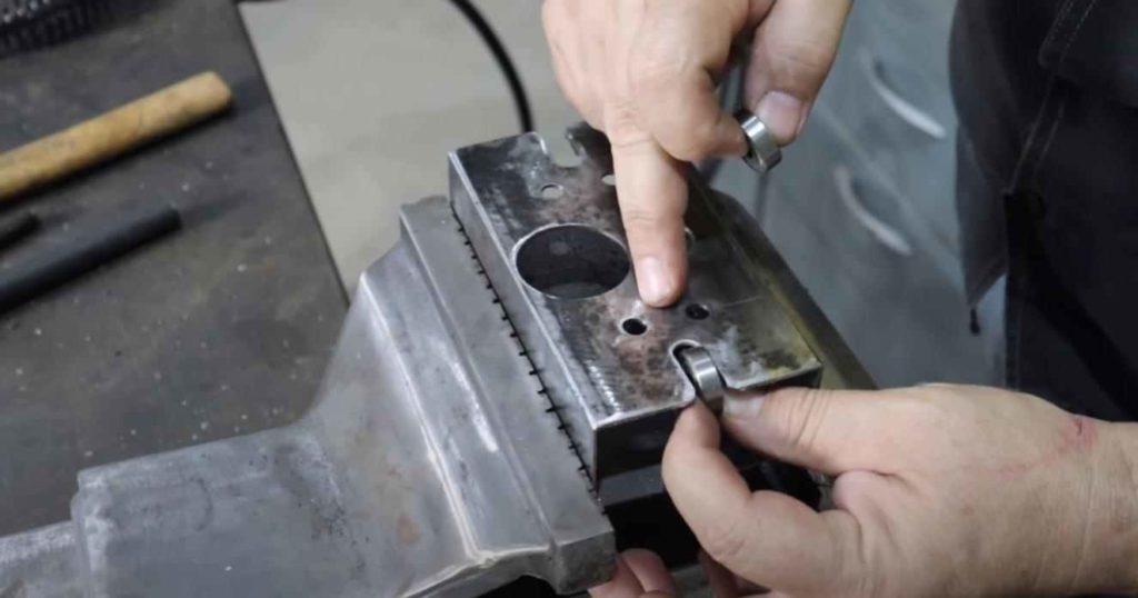 Надеваем заготовку на подшипник, стягиваем при помощи струбцины, и обвариваем. Сварной шов зачищаем болгаркой.