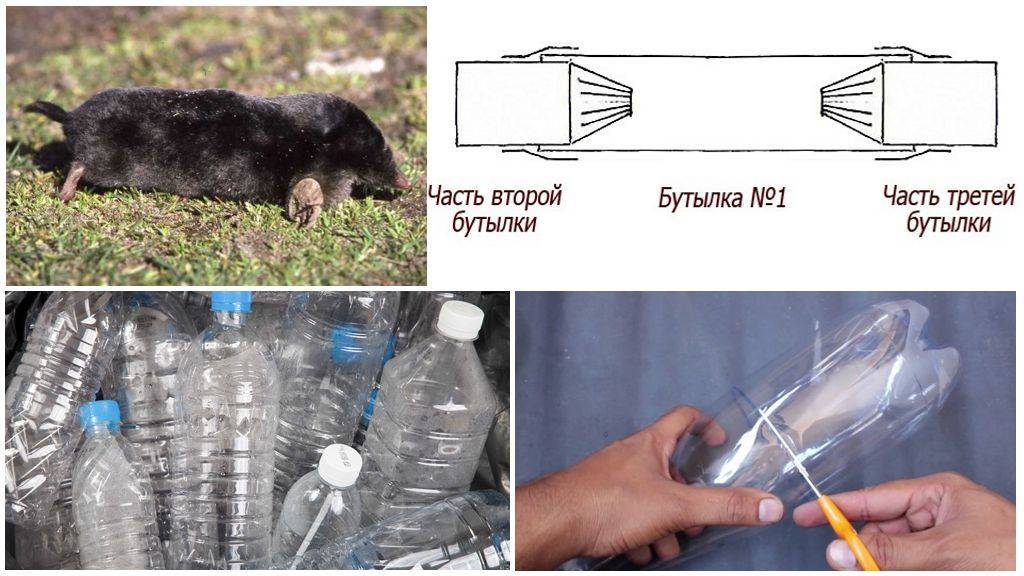Такая кротоловка из пластиковых бутылок легко делается своими руками примерно за 10-15 минут.