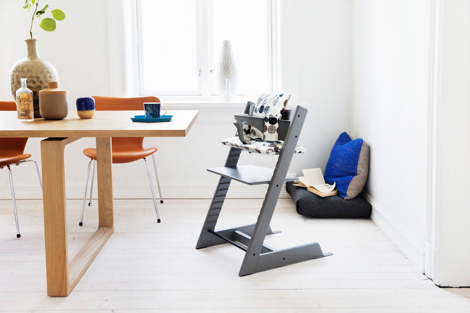 Эргономичное изделие, растущее вместе с малышом едва ли не с самого его рождения, выполнено в классическом дизайне. Специальная вставка позволяет размещать на нём даже грудничков. Но приобретаются такие аксессуары отдельно от самого стула.