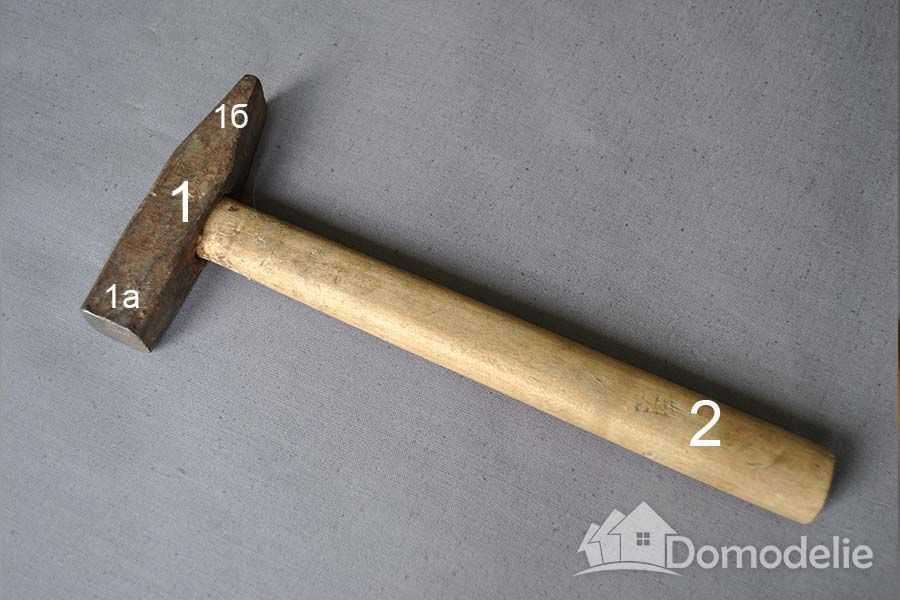 На фотографии: 1 — головка, 1а — боёк, 1б — носок, 2 — рукоять.