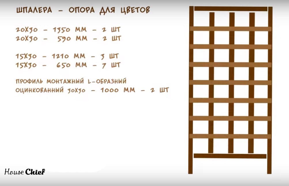 Рассмотрим общую пошаговую инструкцию по изготовлению шпалеры.