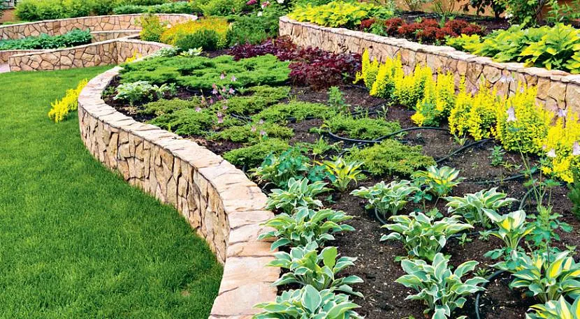 Если высота ярусов совсем небольшая, до 50 см, то можно использовать простую каменную кладку без цементной связки, а в промежутках между камнями размещаются семена многолетних травянистых растений, которые, прорастая, укрепляют и декорируют стенку.