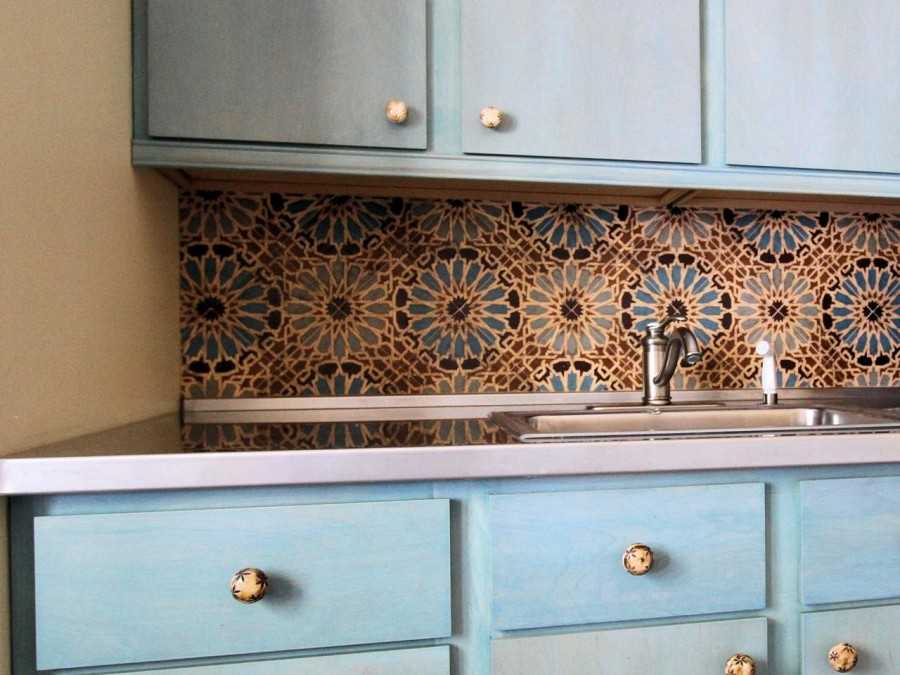 - декорирование отдельного угла кухни (например, рядом с газовой плитой);