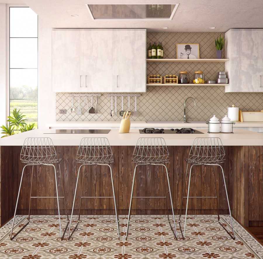 Когда работы окончены, выкладывают фартук. Здесь также отступают от принятых канонов и сооружают на стене узорные картины. Подбирая плитку или цветовое решение в тон, делают плавный переход от фартука к столешнице. Безупречный декораторский прием поможет зонировать кухню без особых трудов и вложений.