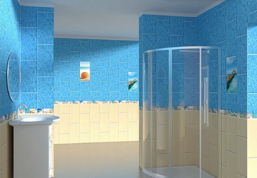 Пластиковые панели идеально подходят для комнат с высокой влажностью. Отделка из ПВХ визуально повторяет камень, плитку или дерево. Перед установкой ламелей стену под обрешеткой обрабатывают антибактериальными составами от грибка. В комнате обустраивают принудительную вентиляцию.