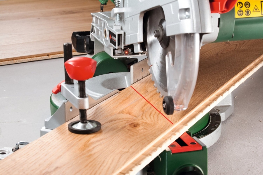 Торцовочная пила с определенным пильным кругом может использоваться для нарезки плинтусов и ламината