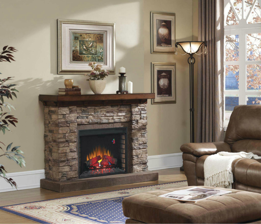 На сегодняшний день наибольшей популярностью пользуются искусственные поленья, которые в работающем электрокамине практически неотличимы от натуральных.