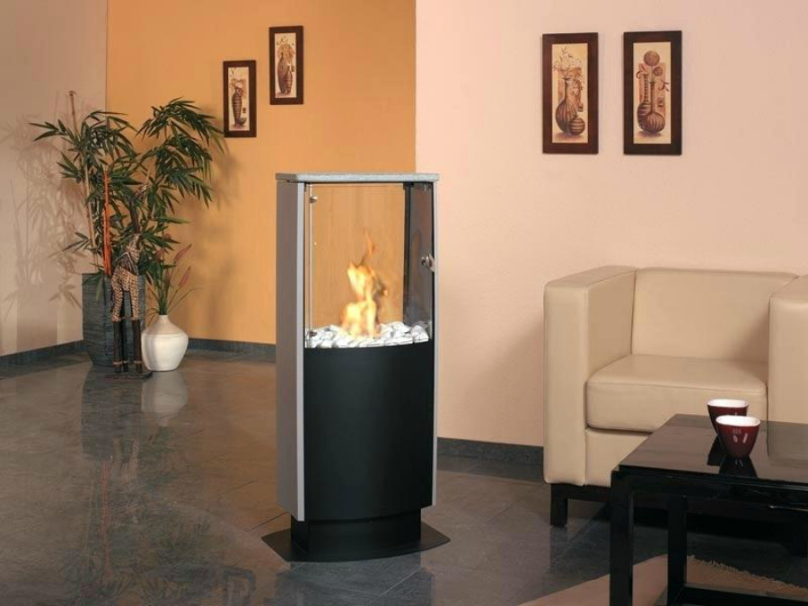 Простейший камин на биотопливе, который еще называют «экокамином», представляет собой большую спиртовку. Принцип ее работы прост: спиртовка заполняется горючим топливом и поджигается. Декорируют такой экокамин по-разному: у некоторых пламя выходит прямо из отверстия, у некоторых ток огня прикрывается декоративными украшениями (керамическими поленьями, камнями, скульптурами).