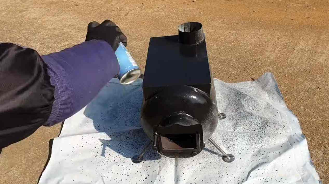 - Когда вы убедились, что походная печь Робинзон работает исправно, ее можно покрыть жаростойкой краской. Предварительно нужно дождаться, пока агрегат остынет.