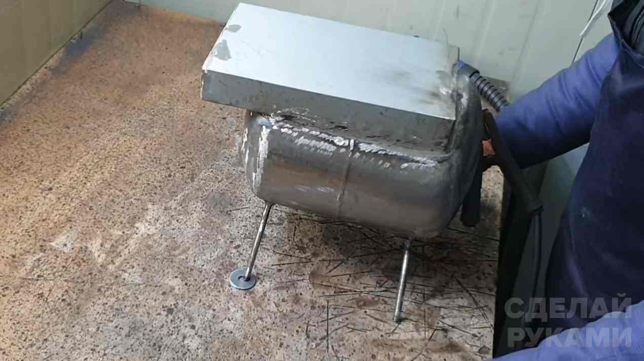 Изготовьте зольник и приварите его к дну. Приварите опоры.