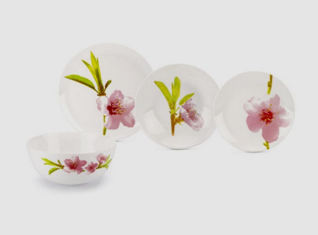19 предметов выполнены из ударопрочного закаленного стекла. Отличается стильностью и изысканностью. Поверхность украшена цветами. Посуда предназначена для ежедневного использования. Долго сохраняет первоначальные качества, не боится механических повреждений. Показатель термоустойчивости на высоте. Можно помещать в микроволновую печь. Комплект рассчитан на 6 человек. Подходит для сервировки стола на праздники. Для приведения в порядок приборов можно использовать посудомоечную машину.