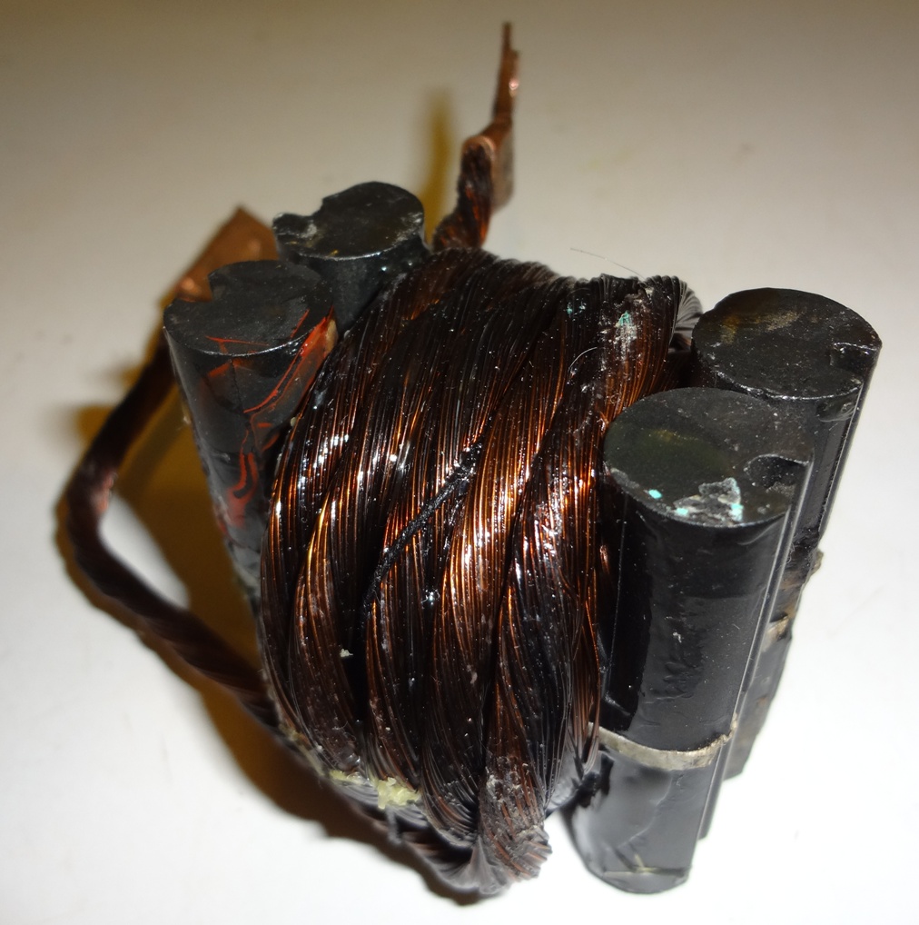 Провода срезаются стамеской или ножовкой (если он сварен, а не склеен), или выковыривается и высверливается (при очень плотной набивки обмотки, когда выбивание всё разрушит). При удалении проводов вторичной обмотки старайтесь действовать аккуратно, чтобы не повредить первичную обмотку. В трансформаторе также бывают шунты, которые ограничивают ток, их тоже нужно срезать.
