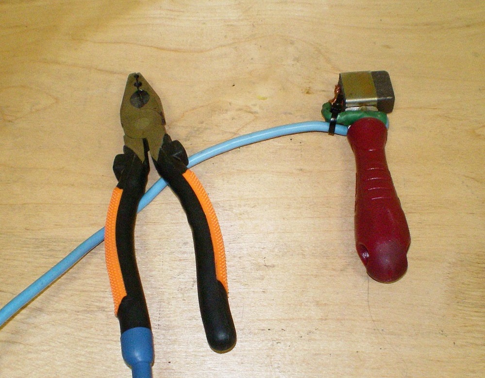 На малых оборотах пучок проводов равномерно закручивается, его общая длина будет несколько уменьшаться. Концы провода зачистить (отдельно каждую жилу), залудить и хорошенько пропаять. Затем изолировать весь провод, желательно изоляционным материалом на текстильной основе.