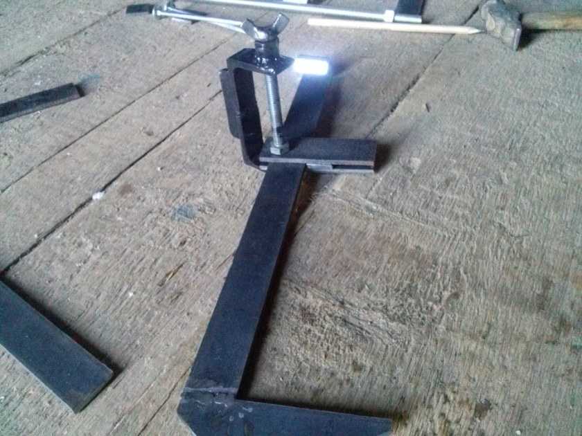 Очень часто случается так, что слесарю приходится работать в помещении неподготовленном, где совершенно нет оборудования. В таком случае работать адекватно невозможно, ведь деталь не закреплена. В таком случае разумно будет изготовить струбцину для слесаря, например, даже из профильной трубы.