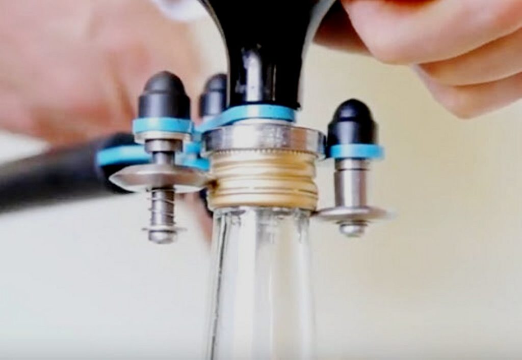 Для работы требуется применение ручной силы. Вначале колпачок надевается на емкость, приспособление фиксируется так, чтобы колпачок находился в центре лепестков цанги. Нажимается верхний рычаг и происходит обжим колпачка. Манипуляции закончены.