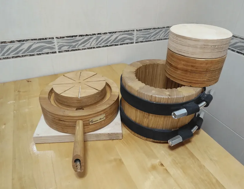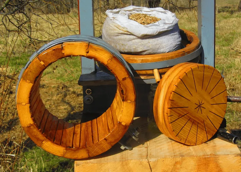 - прогоркание, заолифивание и грибок. При простоях деневянного пресса его необходимо обязательно очищать и обрабатывать пчелиным воском. Если этого не делать, то масло, оставшееся на поверхности дерева заолифивается, прогоркает и новый запах из старого бочонка будет уже никак не вытравить. Если пресс не просушивать, то на деревянных поверхностях может завестись и плесень, что также не сделает масло полезным и экологичным.