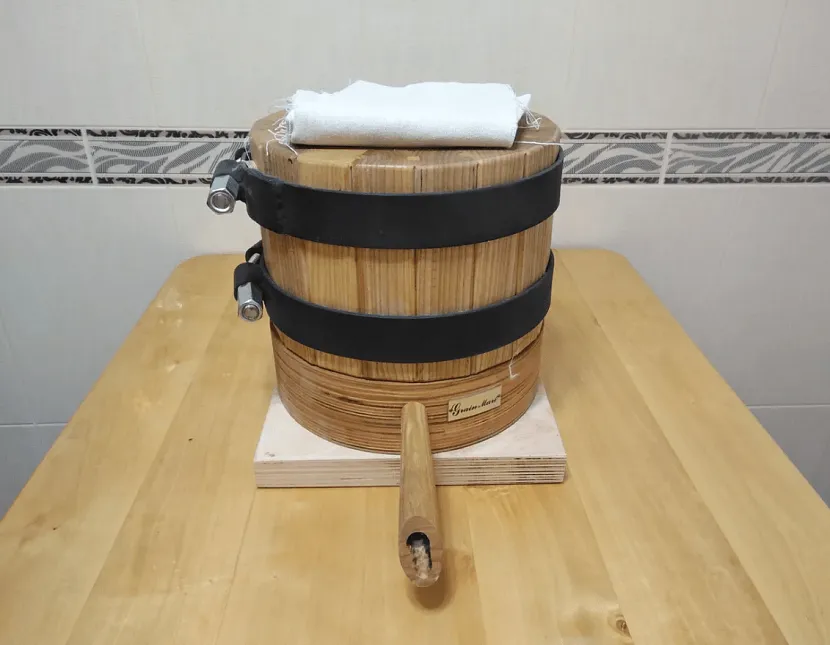 В конце на подготовленную станину вставляется выбранная пресс-бочка, а под выпускной канал используется специальная трубка, через которую масло будет выходить в специально подготовленный резервуар.