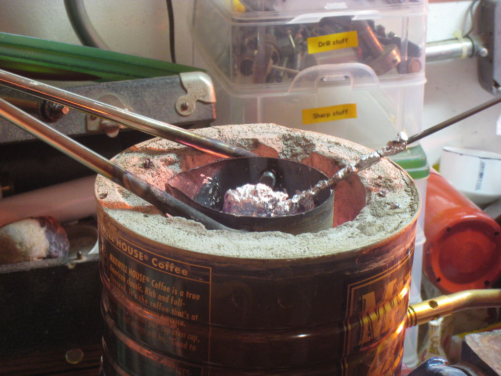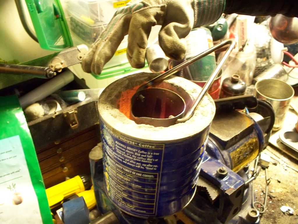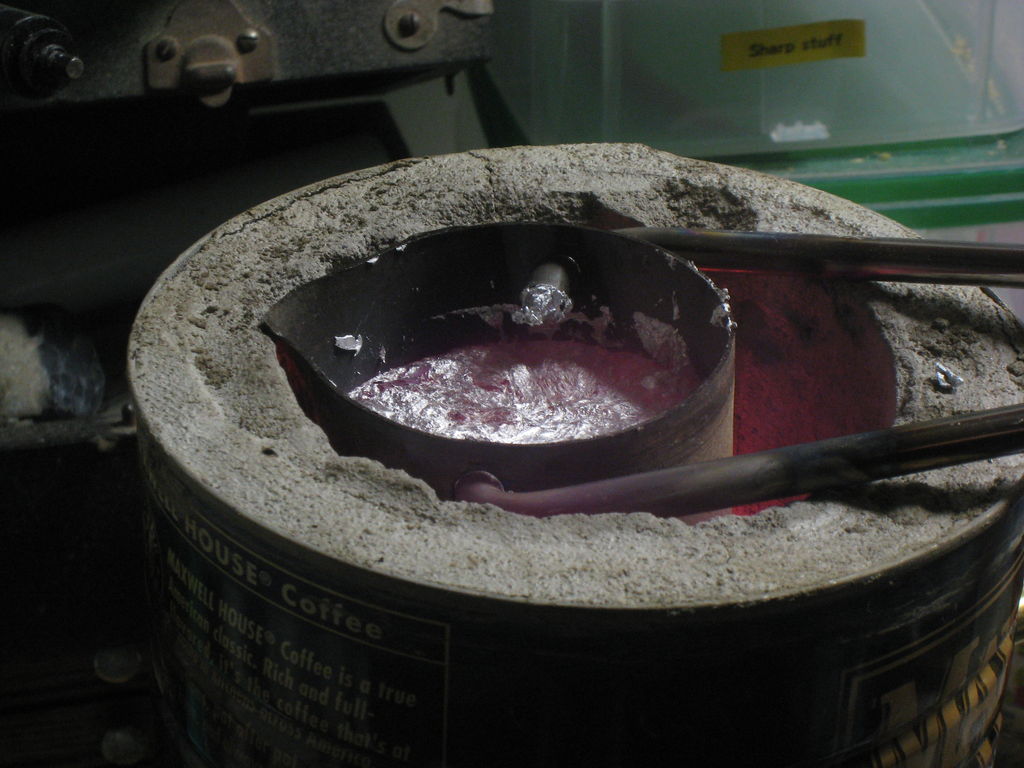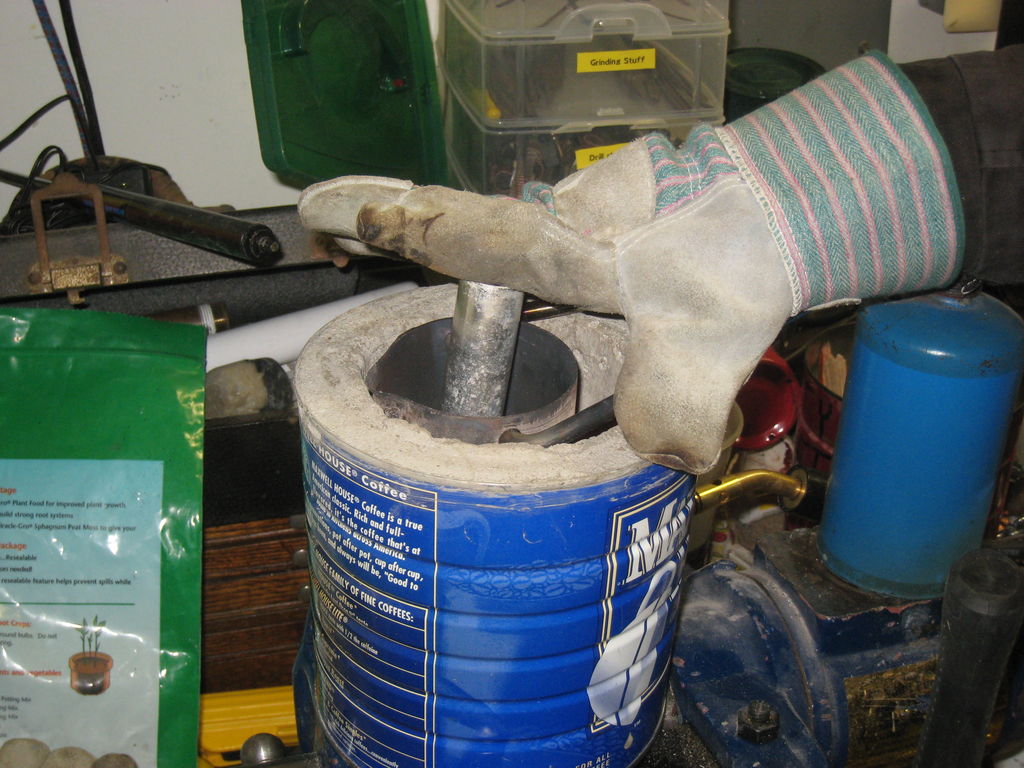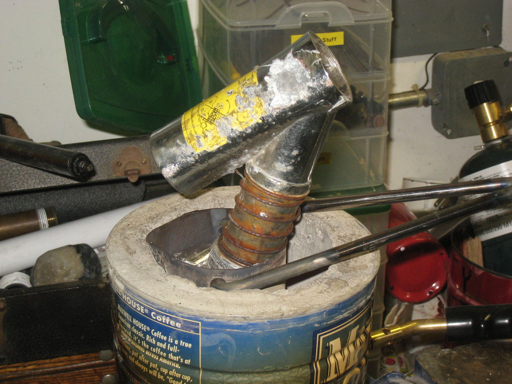 Используя одновременно ручку и крючок, очень удобно переливать расплавленный металл из тигля в форму. Вот и всё, самодельная печь для плавки алюминия готова!