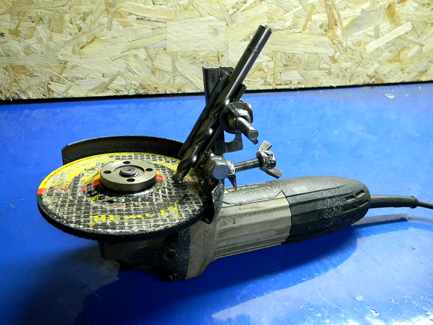 В качестве электроинструмента, который успешно приспосабливают для выполнения заточки сверл, является болгарка. Возможностей применения масса. Можно выделить два основных способа:
