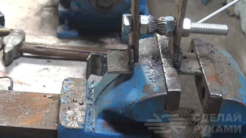 - Фиксируем провод, используя тиски или струбцины. Можно пустить в ход зажим настольной лампы.