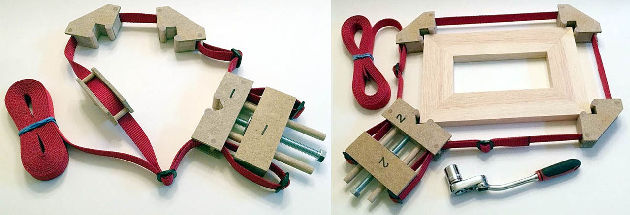 Независимо от типа струбцины, она должна крепко зажимать детали для их соединения или обработки. Угловое столярное приспособление помогает скреплять заготовки из дерева под определенным углом (чаще всего 90°, но бывают и другие). Без этого не обойтись при сборке мебели и рамок.