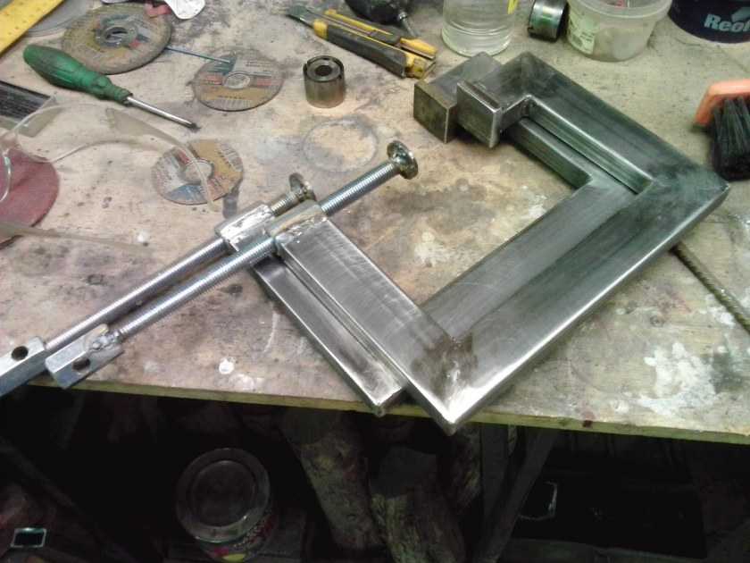 Очень часто случается так, что слесарю приходится работать в помещении неподготовленном, где совершенно нет оборудования. В таком случае работать адекватно невозможно, ведь деталь не закреплена. В таком случае разумно будет изготовить струбцину для слесаря, например, даже из профильной трубы.