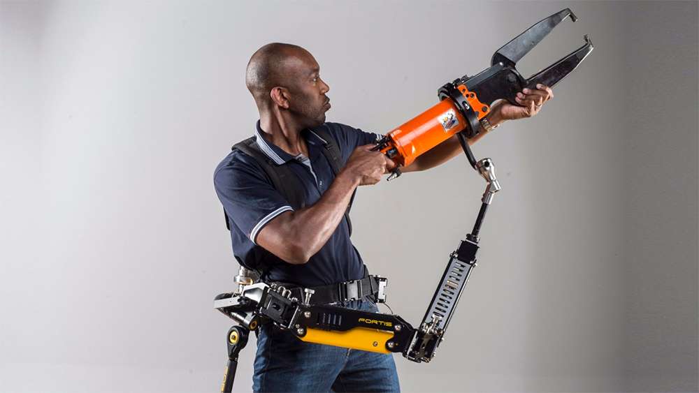 Экзоскелет для грузчиков. Конструкция дублирует опорно-двигательный аппарат, убирая с него часть нагрузки. Она постоянно висит на человеке в деактивированном состоянии, но автоматически распознаёт момент начала работы и включается.