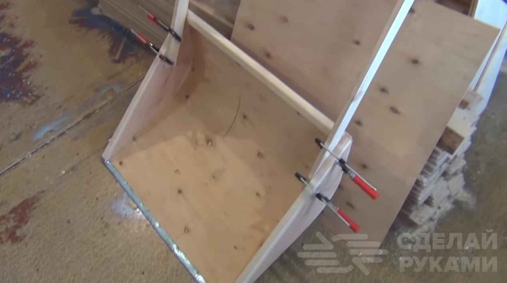- чтобы конструкция не деформировалась, ее нужно отделать уголками по изгибам ковша;