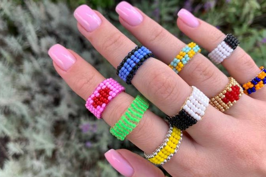 - Дешевизна. Себестоимость сырья низка, а при оптовой покупке проволоки, бисера, нитей, лески колечки будут стоить копейки. Расход бисера на одно украшение совсем небольшой.