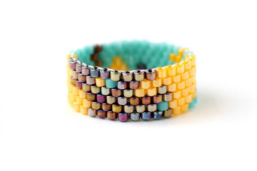 С помощью кольца из бисера картинки и модные образы легко претворить в жизнь: можно быстро изготовить его под любое платье, костюм, образ. Такие вещицы позволяют выразить индивидуальность, выделиться из толпы.