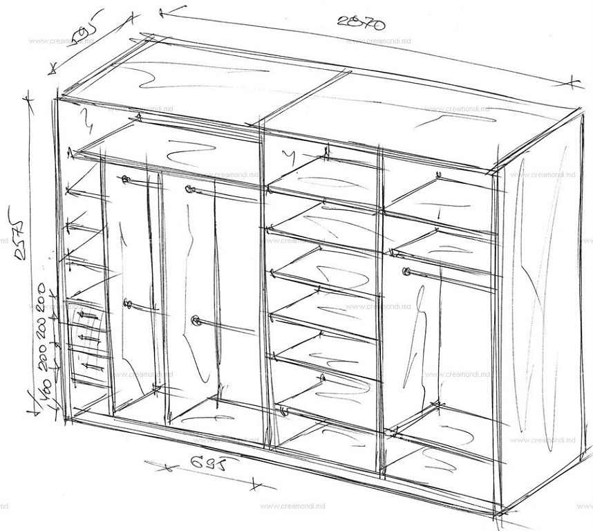 Да все что угодно: можно начертить кривые детали, отверстия внутри. Но самое главное, надо начертить отверстия под дверные петли, выдвижные ящики, полкодержатели и прочую фурнитуру. Фирма возьмет деньги за то, что просверлит их, но сделает она это намного качественнее и ровнее, чем если это сверлить самому.