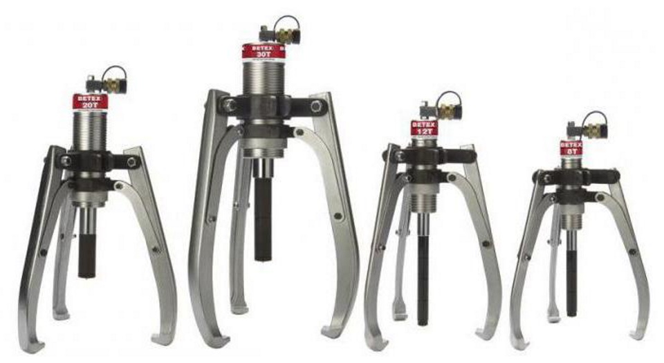 В дополнение к достоинствам механических съёмников оснащены встроенным гидравлическим цилиндром, способным достигать усилий в несколько десятков тонн. Применяются при выполнении тяжёлых и сложных работ. Для изготовления используется сверхпрочная легированная сталь, а предохранительный клапан в гидросистеме защищает от перегрузов. Глубина и точность центровки регулируются специальными приспособлениями.