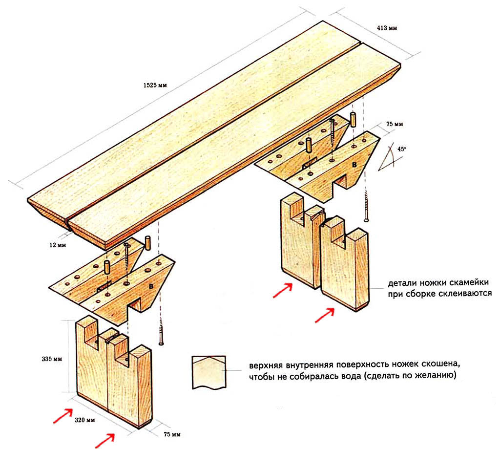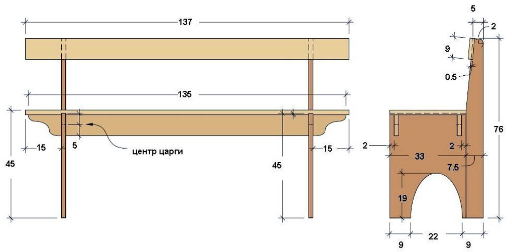 Готовый чертеж деревянной лавочки Все детали будут скрепляться саморезами.