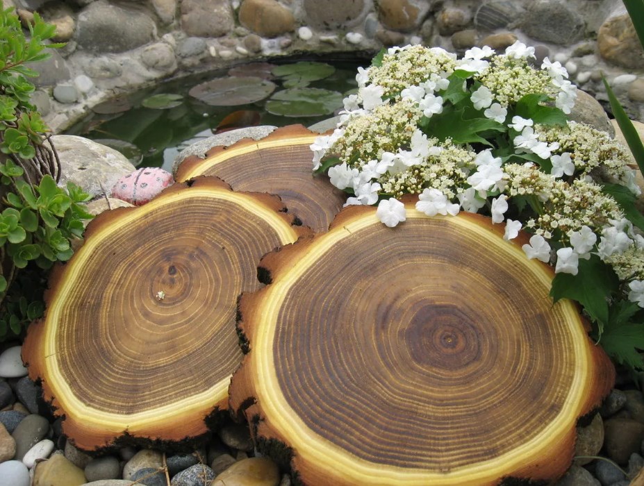 Спилы дерева для декора отличаются разновидностью сырья. Прежде чем выполнять работу, неплохо бы ознакомиться с некоторыми местными породами деревьев: