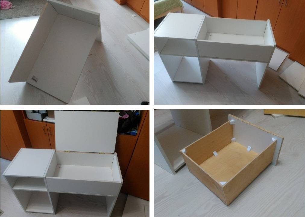 Если конструкция не предполагает выдвижной бокс, можно приступать к соединению деталей с помощью уголков и покраске готового изделия.