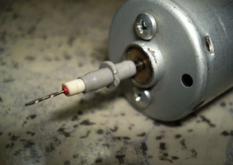 Сверлить стены таким прибором не получится, а вот отверстия в печатной плате – запросто. В принципе, можно использовать любой компактный электроприбор, у которого удобно расположен вал двигателя. Например, старую электробритву.