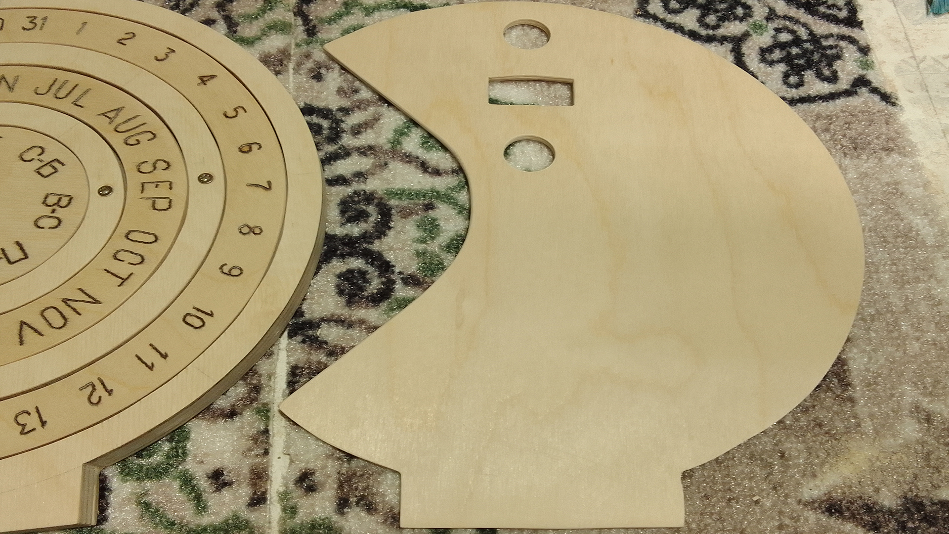 - Деревянная заготовка календаря (сосна) и круглая накладка из фанеры для часов;
