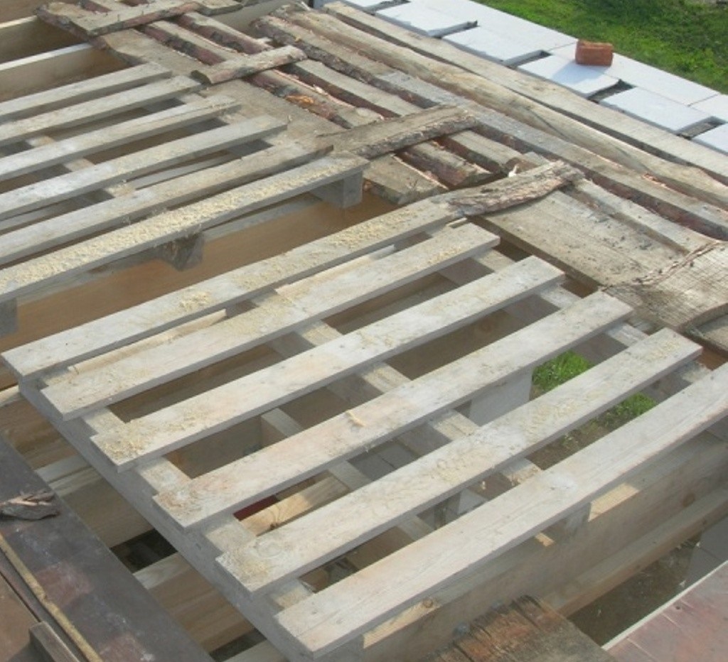 Некоторые пользователи упрощают и ускоряют процесс, собирая из паллет опорные столбы по углам и устанавливая тонкие простенки из вертикально установленных поддонов.